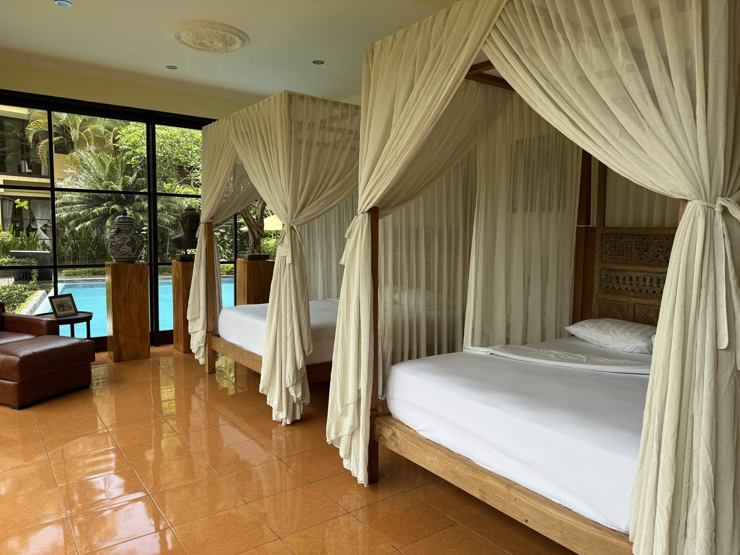 Ananda Villa | two-story shared space with five individually canopied twin beds and two full bathrooms – $2,500